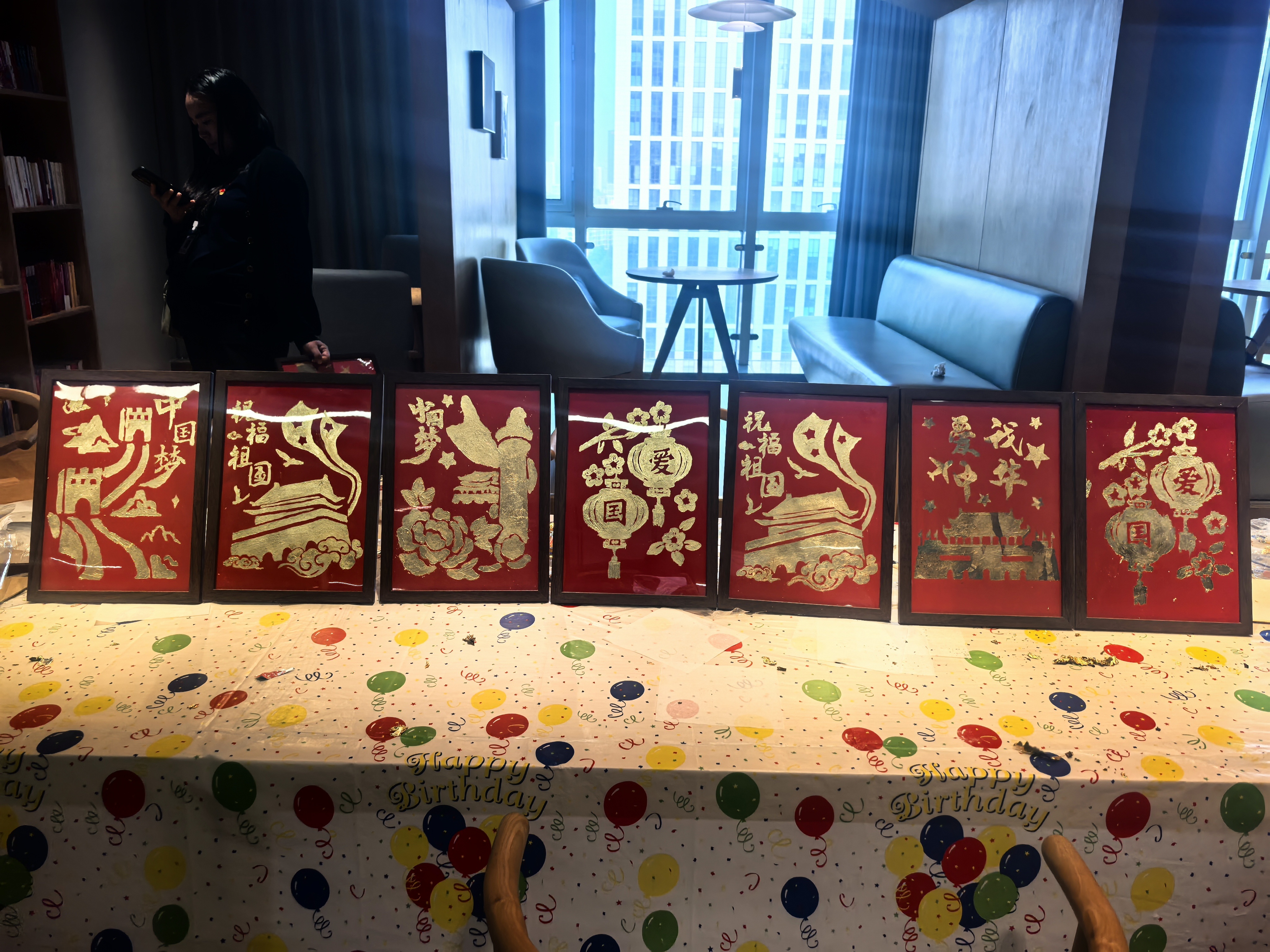 紧随其后的是非遗烧金箔讲解与制作环节,老师声情并茂地讲解金箔锻造这一古老技艺的悠久历史与独特魅力,其薄如蝉翼、轻若鸿毛的特质,及背后蕴含的“千锤百炼、精益求精”的工匠精神,令在场每一位同仁赞叹不已。指尖流转间,一幅幅金光熠熠、寓意吉祥的图案逐渐呈现,这不仅是对传统技艺的亲身体验,更是以匠心独具的方式,向伟大祖国献上的深情贺礼。